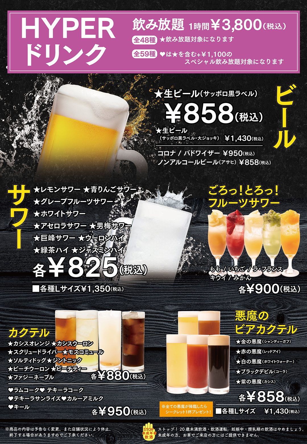飲み放題60分 3,800円(税込)