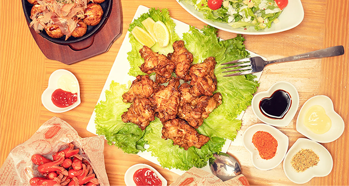 シーザーサラダ/フライドポテト/たこ焼き/チキンウイング(4種のスパイス)/タコちゃんウィンナー
